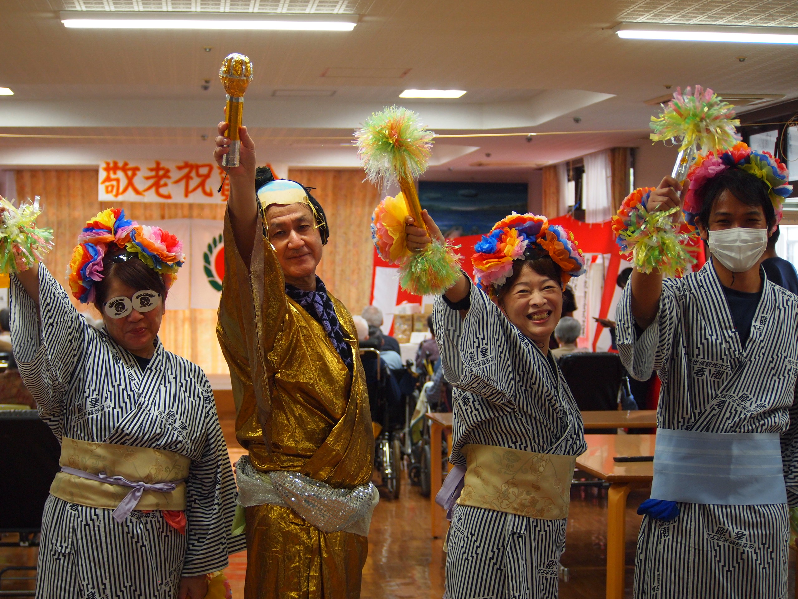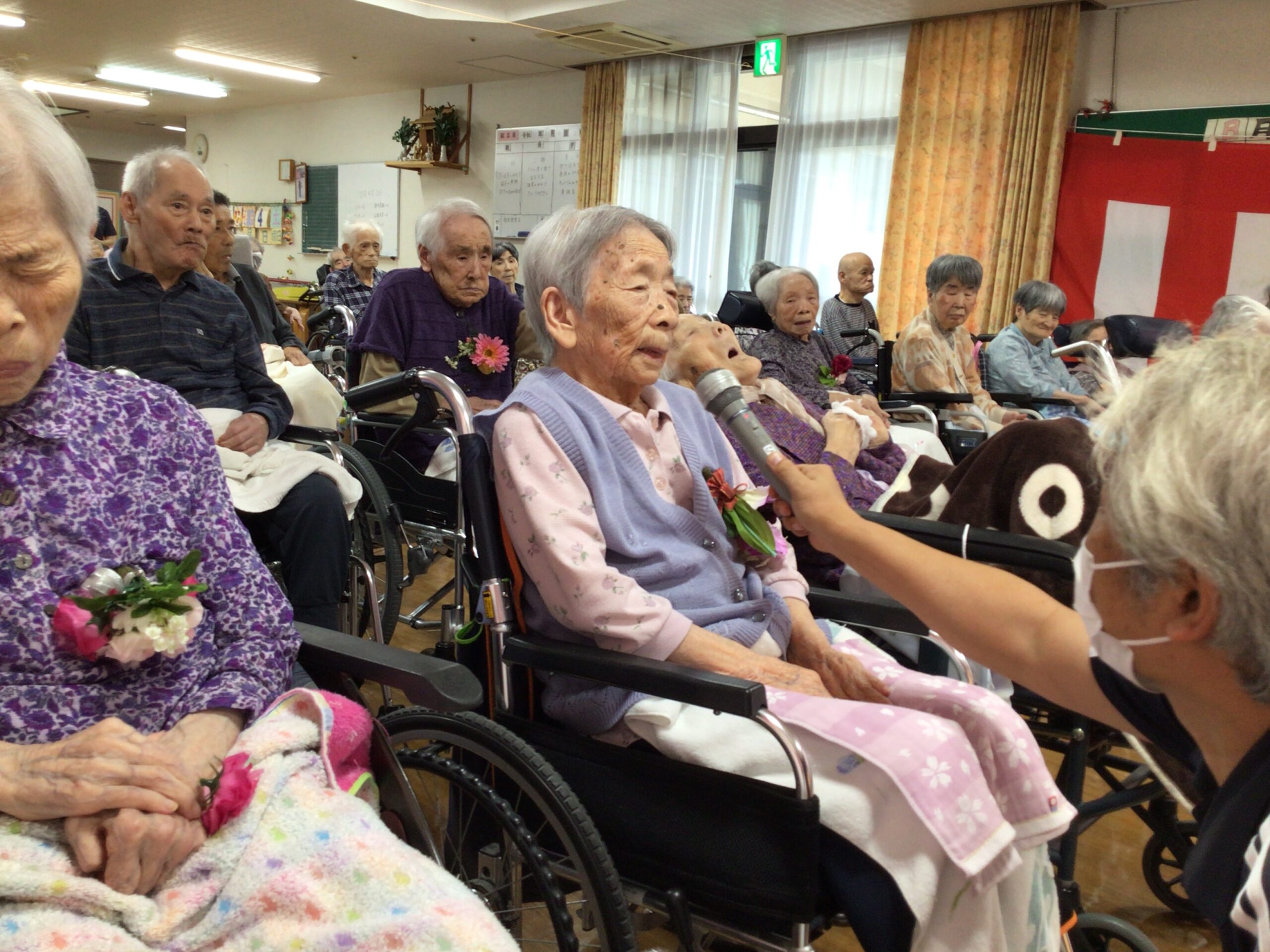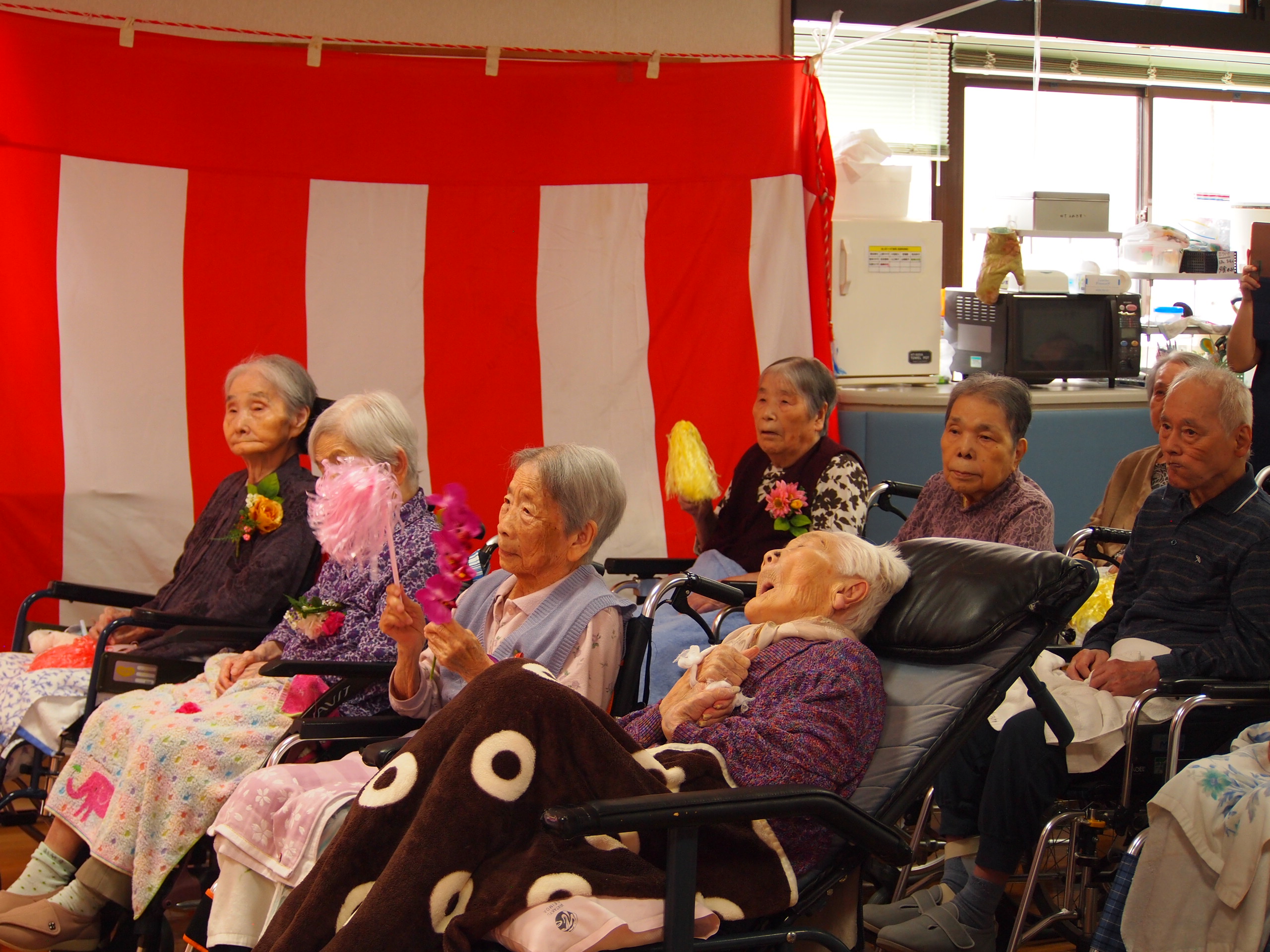 入居者様のご家族や有志の方より、祝吟、踊りを披露して頂き、皆様大変喜ばれました\(^O^)/