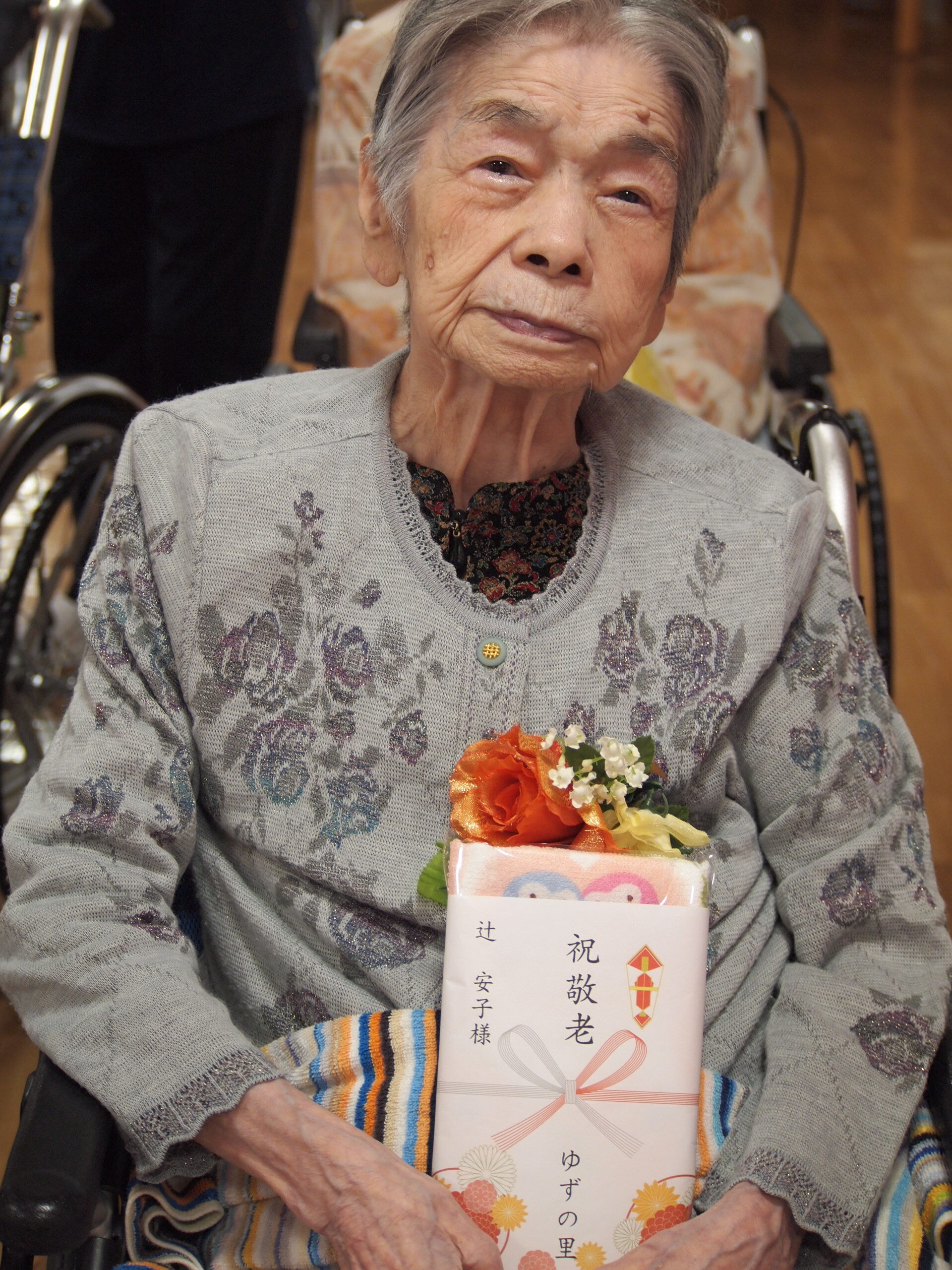 カトレア最高齢103歳の方と、米寿を迎えられた2名の方に記念品贈呈を行いました。